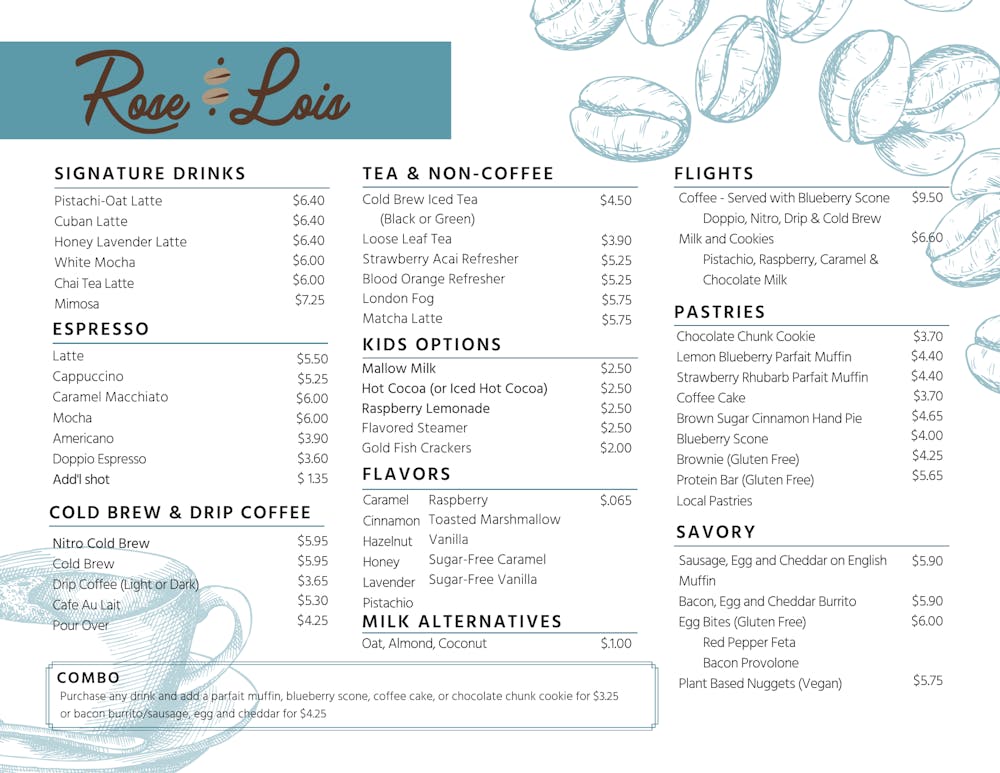 Store Menu Rose Lois Coffee Shop And Mobile Coffee Bar In Carmel In